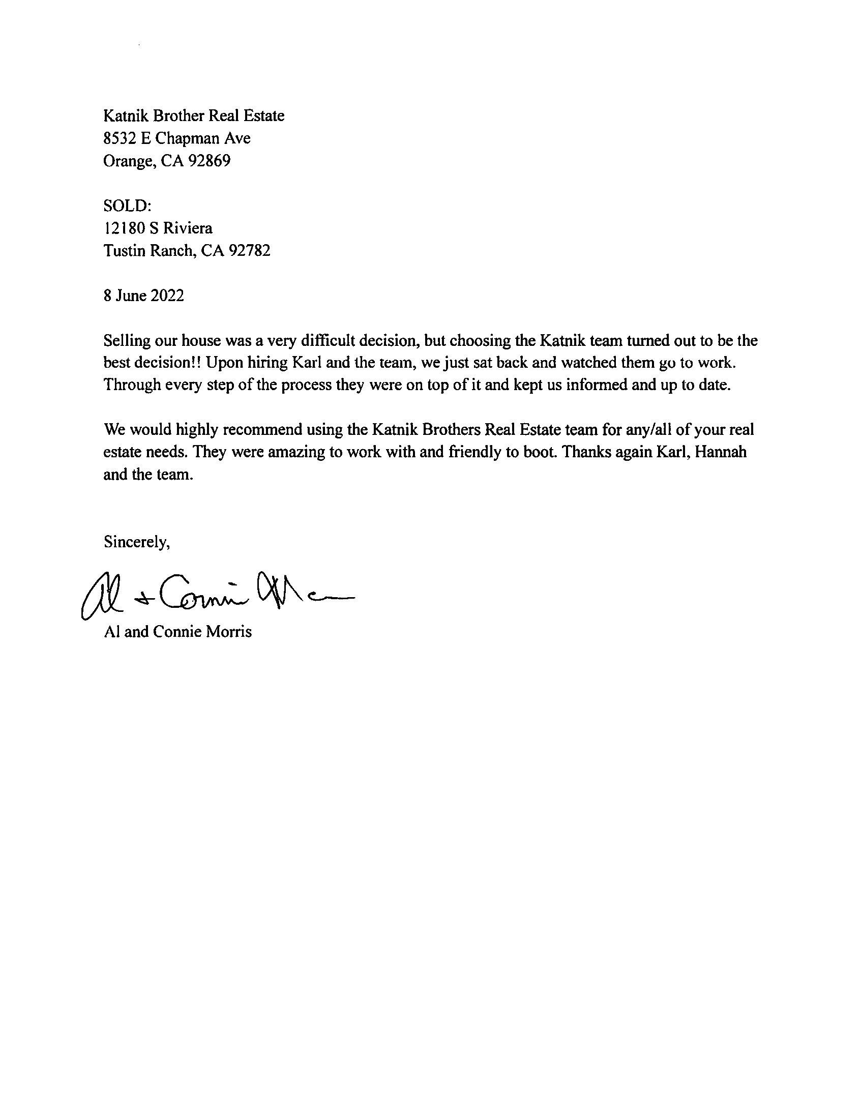 "We would highly recommend using the Katnik Brothers Real Estate team"