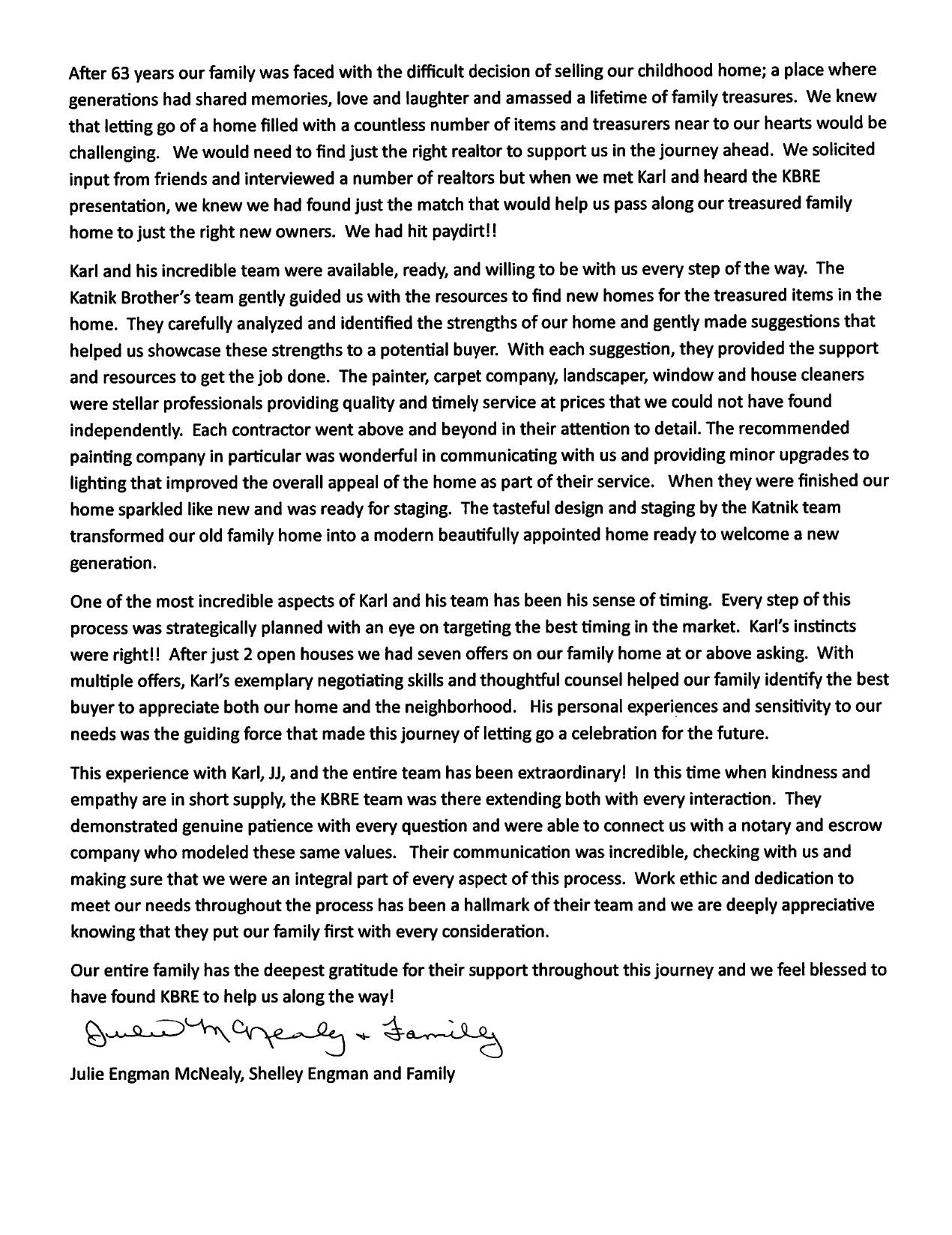 "Work ethic and dedication to meet our needs throughout the process has been a hallmark of their team and we are deeply appreciative knowing that they put our family first with every consideration."