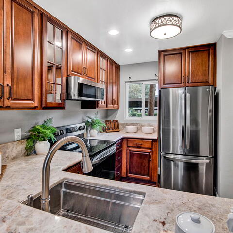 Welcome to 5927 E Creekside Avenue #22! This Special Dream Home Has Been Fully Remodeled, Boasts Two Bedrooms, One and a Half Bathrooms, New Interior Paint, Luxury Vinyl Plank Flooring, Dual Pane Windows, Recessed Lights, New HVAC, and So Much More! The Beautiful Family Room Enjoys a Cozy Upgraded Fireplace with Ceramic Gas Logs, Crown Molding, and Patio Access. The Private Tranquil Patio has a New Vinyl Fence and Enjoys Views of Nature and the Hillside Greenery. The Custom Gourmet Kitchen Features Black Stainless Steel Appliances Including a New Dishwasher, New Range, Newer Microwave, Granite Countertops, Soft Close Cabinets, Farmhouse Sink, and Breakfast Bar Seating. The Dining Area Opens Directly to the Family Room and Kitchen Which is Perfect for Entertaining. The Private Master Suite Includes A View of the Hillside Greenery, Large Mirrored Closet Doors, Remodeled En-Suite Bathroom, Dual Vanities, New Shower Doors, Skylight, and Ample Amounts of Cabinet Storage. Additional Features Include Indoor Laundry, Newer Water Heater, One Covered Carport Space, and Plenty of Guest Parking. Walking Distance to Community Amenities Including: A Resort Style Pool, Spa, BBQ Area, and Club House. Short Drive to Orange Hill Restaurant, Old Town Orange (Plaza), Irvine/Peters Canyon Regional Parks, Shopping, and Dining. Easy Access to the 22/55/91 Freeways and 241/261 Toll Roads. Located in the Highly Coveted Villeurbanne Community of Orange, 5927 E Creekside Avenue #22 is a Must See!